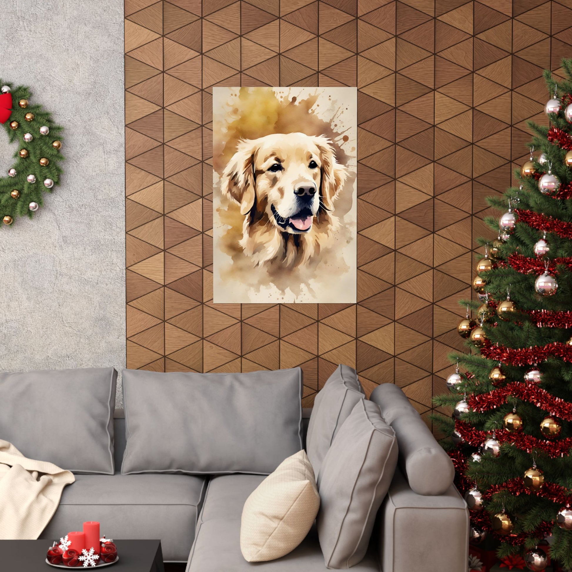 Capture the loyalty and warmth of man's best friend with this stunning Golden Retriever poster. With its regal golden hues and endearing gaze, it's the perfect addition to any sophisticated space. Bring a touch of luxury and elegance to your home with this exquisite piece of art.