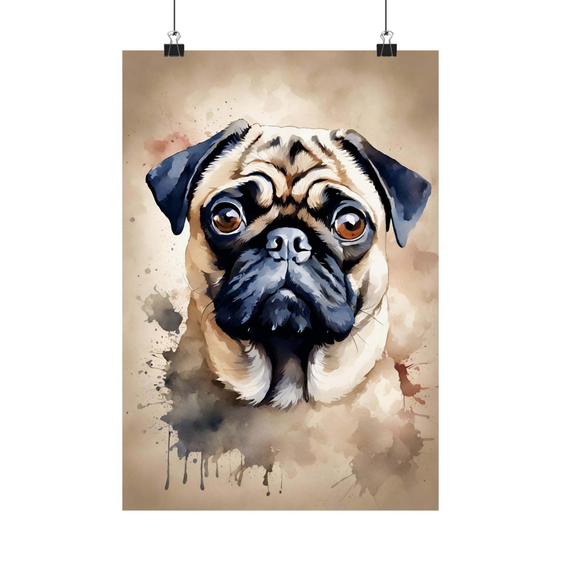 Unleash your love for pugs with this adorable poster. Perfect for dog lovers and pug enthusiasts alike. No barking up the wrong tree here - this playful poster is guaranteed to add some paw-sitive vibes to your space. (Warning: may cause extreme cuteness overload). Woof!