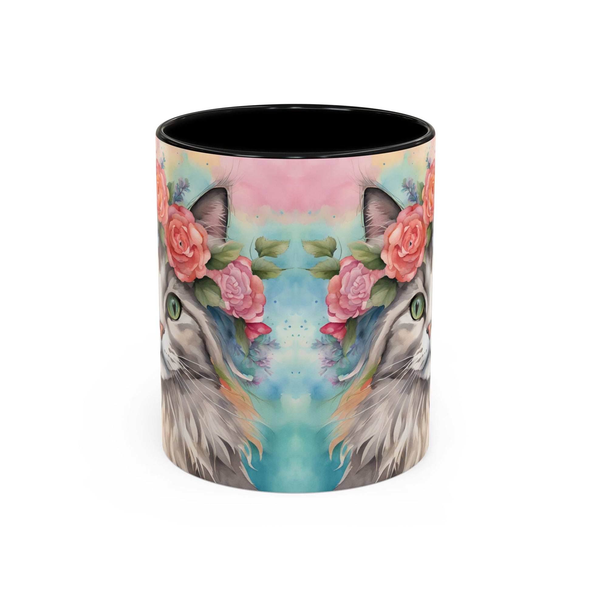 Start your day with a splash of personality using this vibrant Accent Coffee Mug. Perfect for coffee lovers and cat enthusiasts, this mug features a stunning floral cat design that will brighten any morning routine. Whether you're sipping your favorite brew at home or at the office, it adds charm and character to your beverage experience. It's ideally suited for birthdays, housewarming parties, or just a little treat for yourself! With its unique color contrast and glossy finish, this mug is not just a drinking vessel—it's a statement piece for your kitchen or workspace.