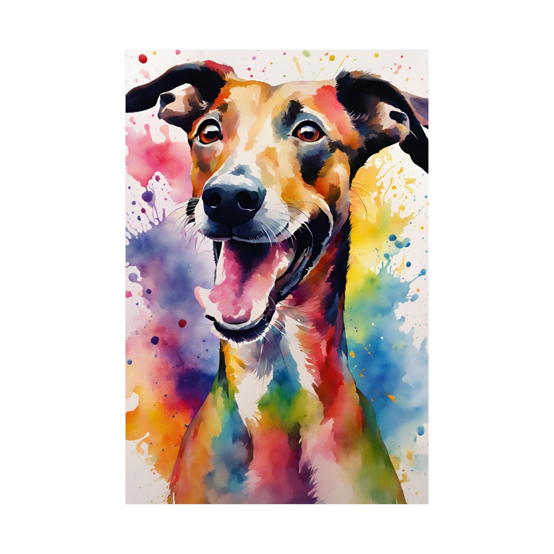 Bring some playful charm to your walls with our Multicolored Goofy Greyhound Poster. Perfect for dog lovers, this poster features a quirky and fun design that is sure to make you smile. A great addition to any home or office, it will add a touch of humor and personality to any space. (Get ready for some paw-some compliments!)